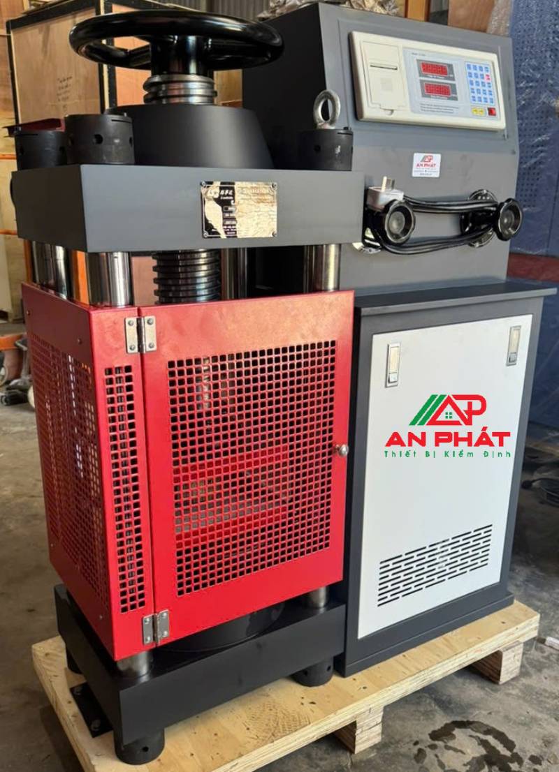 An toàn: Luôn sử dụng trang bị bảo hộ (kính, găng tay) và tuyệt đối không đứng gần mẫu khi máy đang nén. Không vượt quá tải trọng tối đa 2000KN.